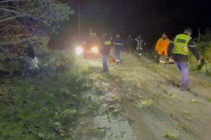 Si pasojë e erës së fortë, disa pisha ranë mbi rrugë në…